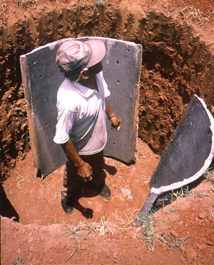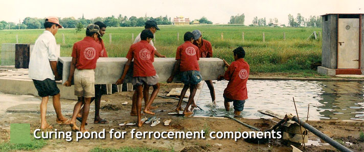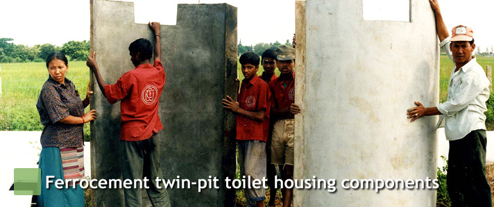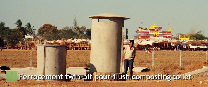 As awareness of the need for healthy habitats increases, this fuels a steady demand for low cost sanitation solutions.  There are many and varied alternatives to ferrocement.  For example, the pits may be consructed from bamboo, or bricks, while the superstructure can be made from bamboo or timber poles and canvas, or stabilised compressed earthblocks.  The roof covering may be of thatch, metal or corrugated sheet.  The production of these toilets has the potential to quickly generate income, once basic capital costs are covered.