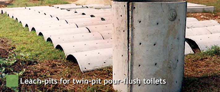 The twin-pit pour-flush composting toilet consists of two leach pits to which a pour-flush toilet pan is connected via two soil-pipes.  A minimal amount of water is required to flush the pan.  The effluent from the toilet is directed first to one of the leachpits which are permeable and thus allow liquid to pass into the surrounding soil, while solids remain in the pit.  As a ‘rule of thumb’ a family of seven takes two years to fill the first leach pit, at which point, the effluent is directed into the second leach-pit, leaving the contents of the first leach-pit to develop into compost which can then be removed with a shovel and safely used to fertilise crops.  See also information on the Akvo.org website.